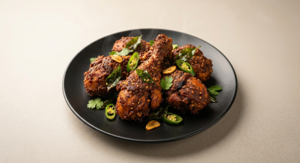 Rich and spicy ghee roast chicken with deep roasted flavors.